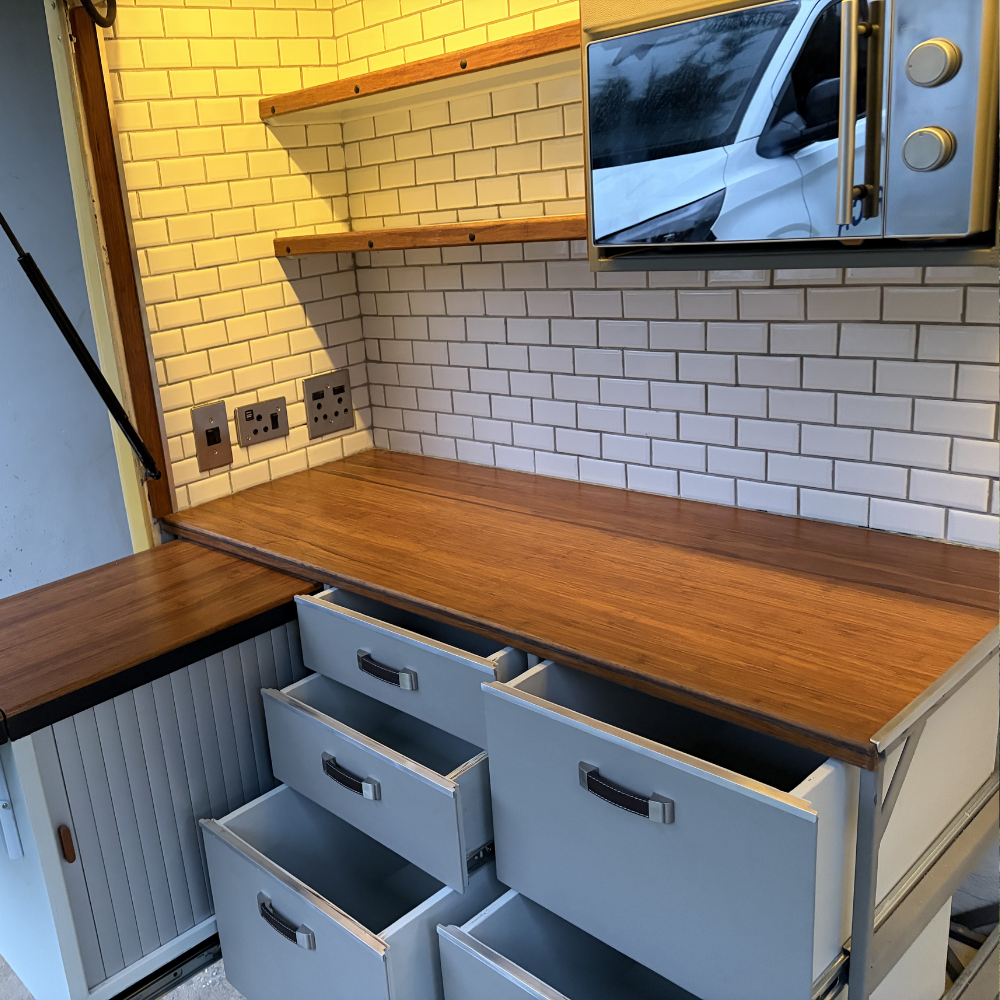 This addition reflects the original vision: not only to build something striking, but to build something usable. The bus is designed to cruise comfortably and then transition seamlessly into a weekend camping setup.
