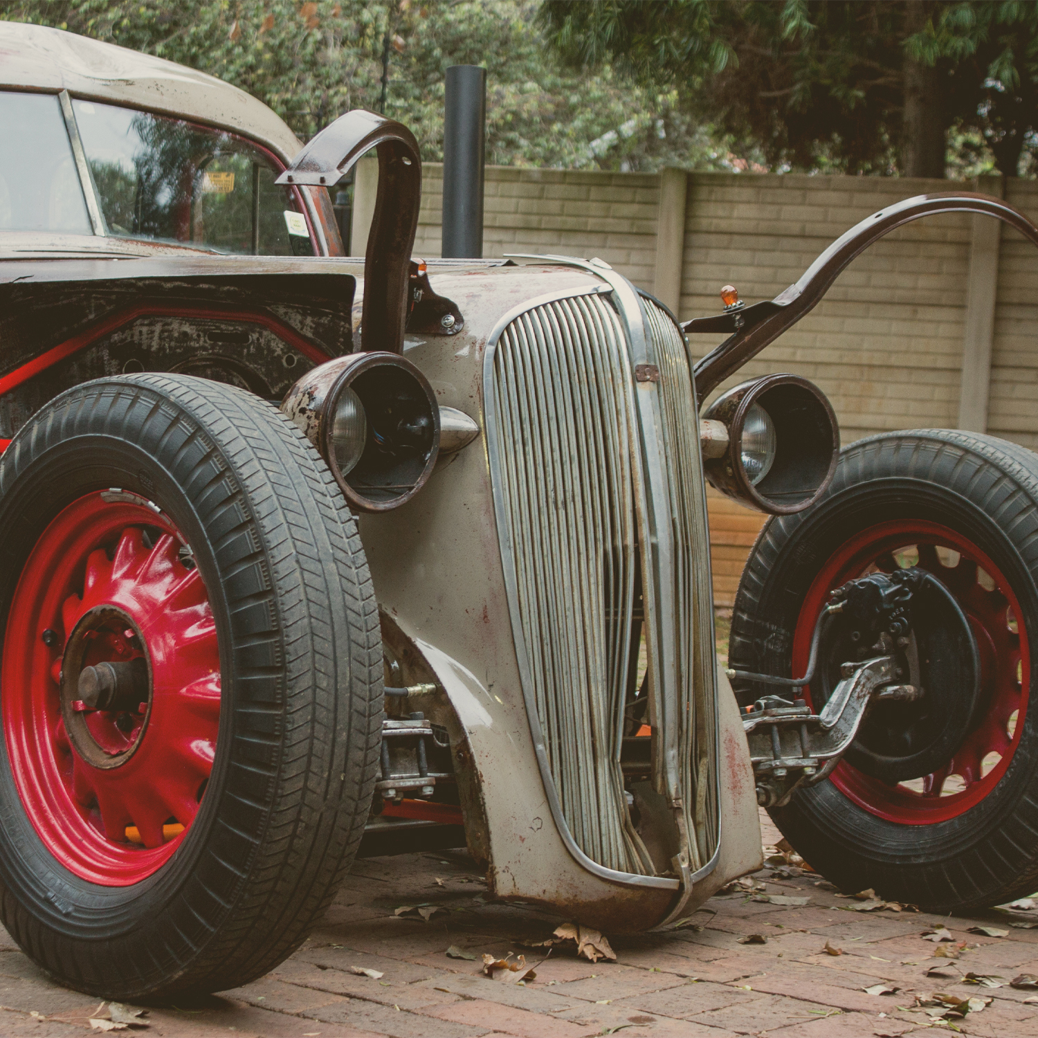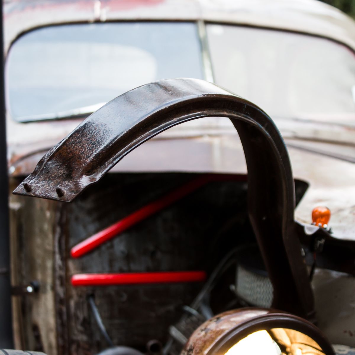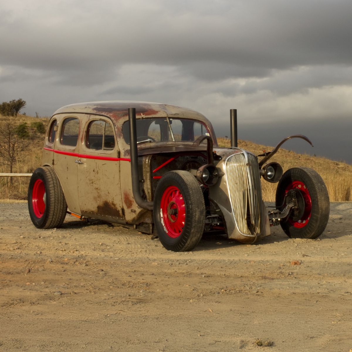 The floor was completely gone, so Danie fabricated a new one that could house the propshaft, internally mounted air suspension and rear diff. The doors were rebuilt from within, retaining only their skins. The center B-pillar was removed to open up the cabin and give easier access, and the body was lowered onto the chassis to create its unmistakable stance. The original patina — more than eight decades of weathering — was preserved under clear coat rather than covered over. The chassis remains original, strengthened and sealed in clear as well.