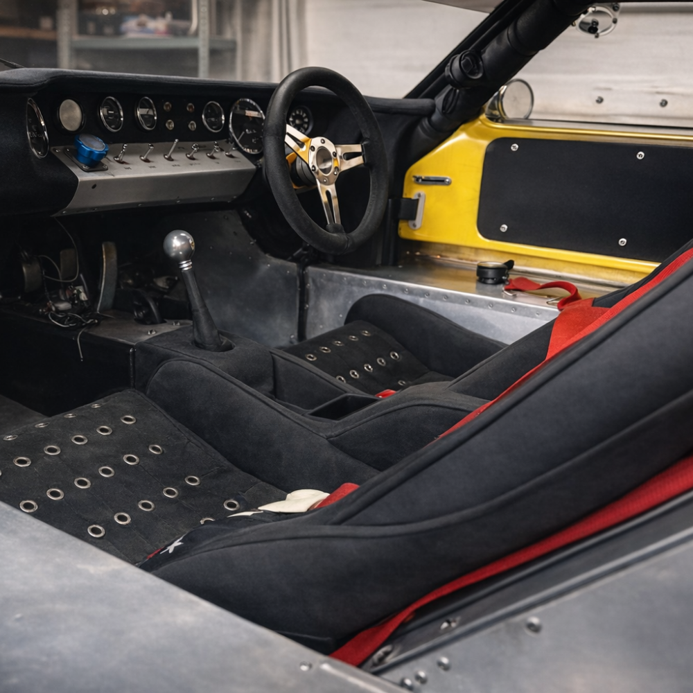 The interior design stays true to the GT40 philosophy — minimalistic, driver-focused, and purposeful — while still delivering a high-quality finish.