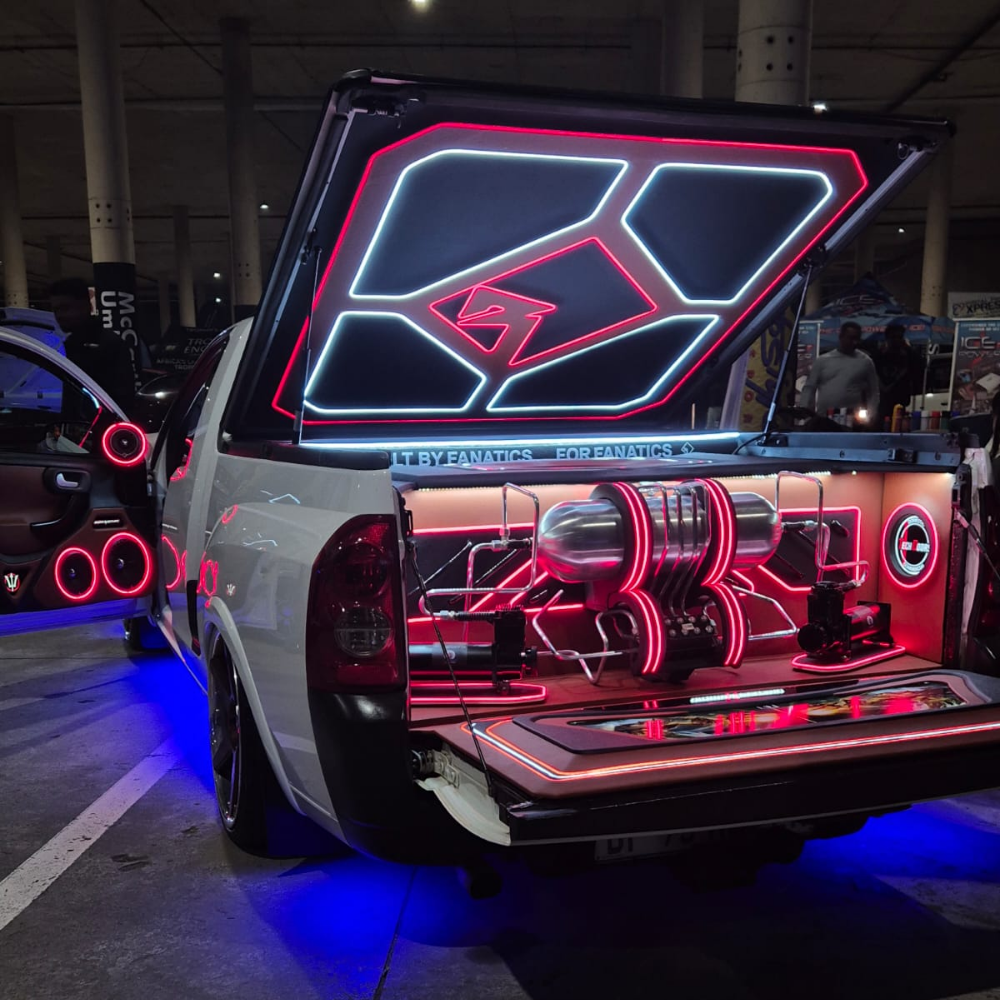 The exterior stance is equally striking. The vehicle sits on 18-inch forged two-piece split rims, custom-made by Forgia Wheels South Africa. As a one-of-one set, these wheels contribute to the ute’s unique identity and unmistakable presence.