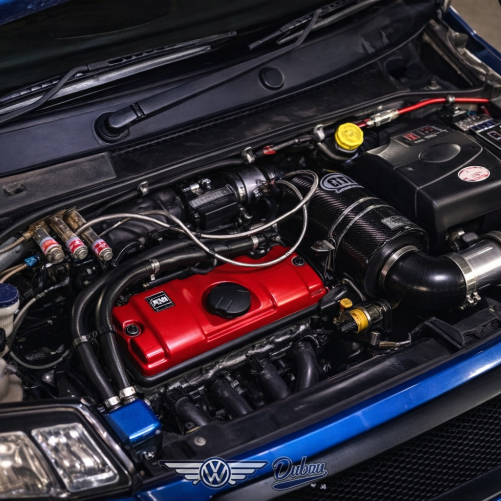 The bottom end of the engine remains stock, but the cylinder head was gas-flowed, ported, and fitted with larger valves, along with a mild street cam. A BMC cold air intake, drawing air from the bumper, reduced intake temperatures by nearly 10°C. The throttle body was also flowed to improve breathing.