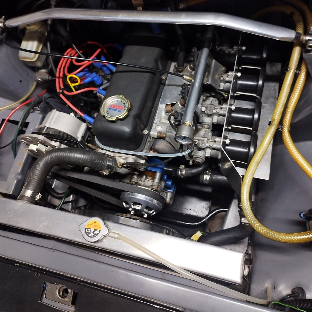 Rolling on 13-inch Targa replica wheels, the originals were widened from 7J to 9J—a serious transformation carried out by Sumo Customs. Wrapped in 175/50/13 Yokohama tyres, the setup delivers that perfect balance of stretch, grip, and period correctness.