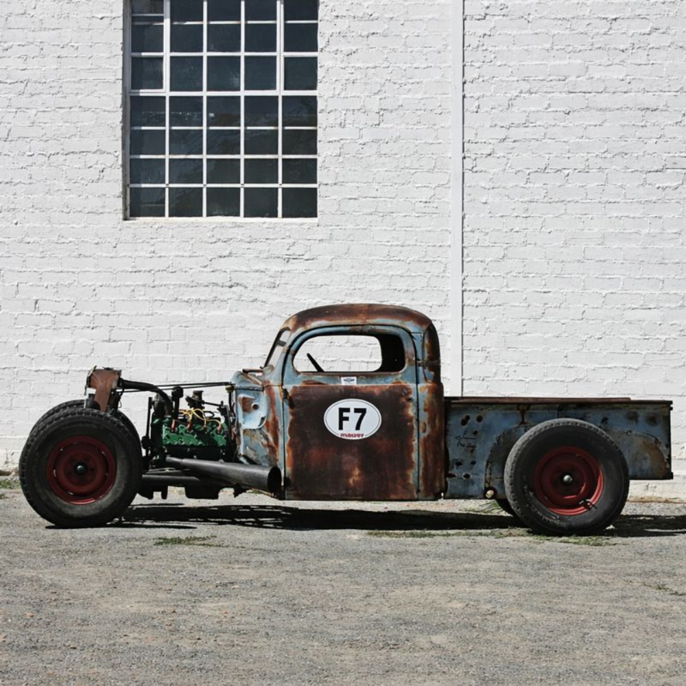 The foundation was already waiting. A 1941 Ford chassis, acquired years earlier in Pofadder in exchange for a bottle of brandy (the town, not the snake), and a 1948 Ford pick-up body rescued during a scavenging trip to Kamieskroon back in 1994. With Henry’s input, the vision became clear: chopped, channelled, stretched — and built to run.