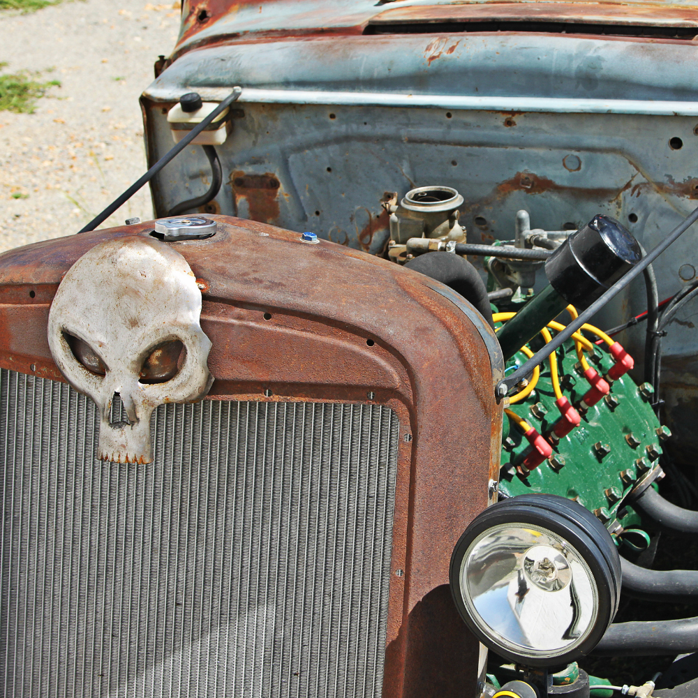 The 1951 flathead V8 sourced from a Marmon-Herrington truck was found rusted solid, rainwater having sat in the cylinders for years. With liberal applications of castor oil and perseverance, the engine slowly freed itself. The head gaskets, however, had not survived. With no replacements available, the decision was made to trust fate and remove the radiator cap seal.