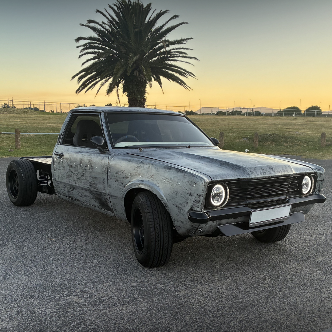 What started life as a Mk3 Cortina has undergone one of the most dramatic transformations imaginable. The rear section of the car was cut off and shortened, giving birth to a compact, aggressive bakkie silhouette that instantly sets it apart from anything else on the road.