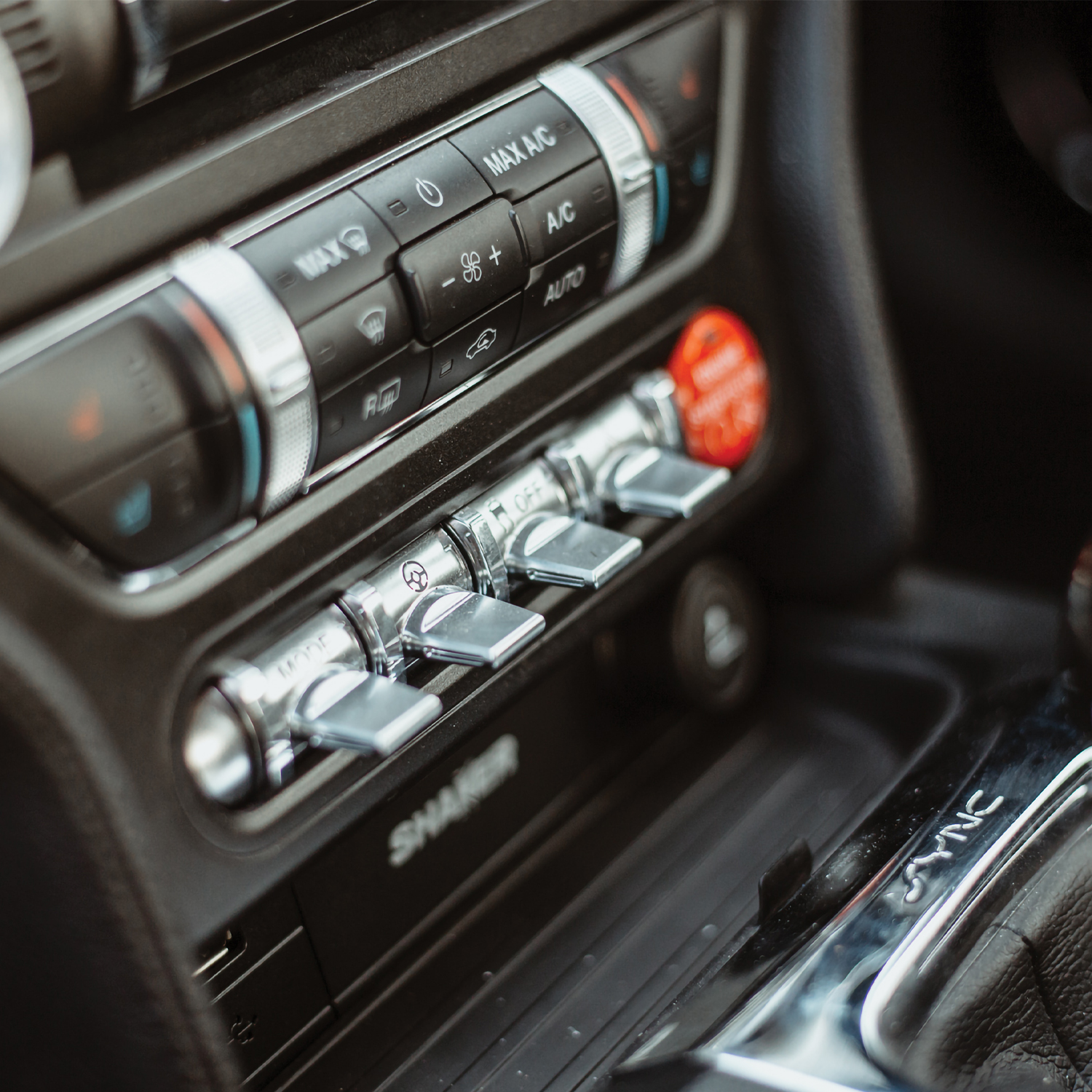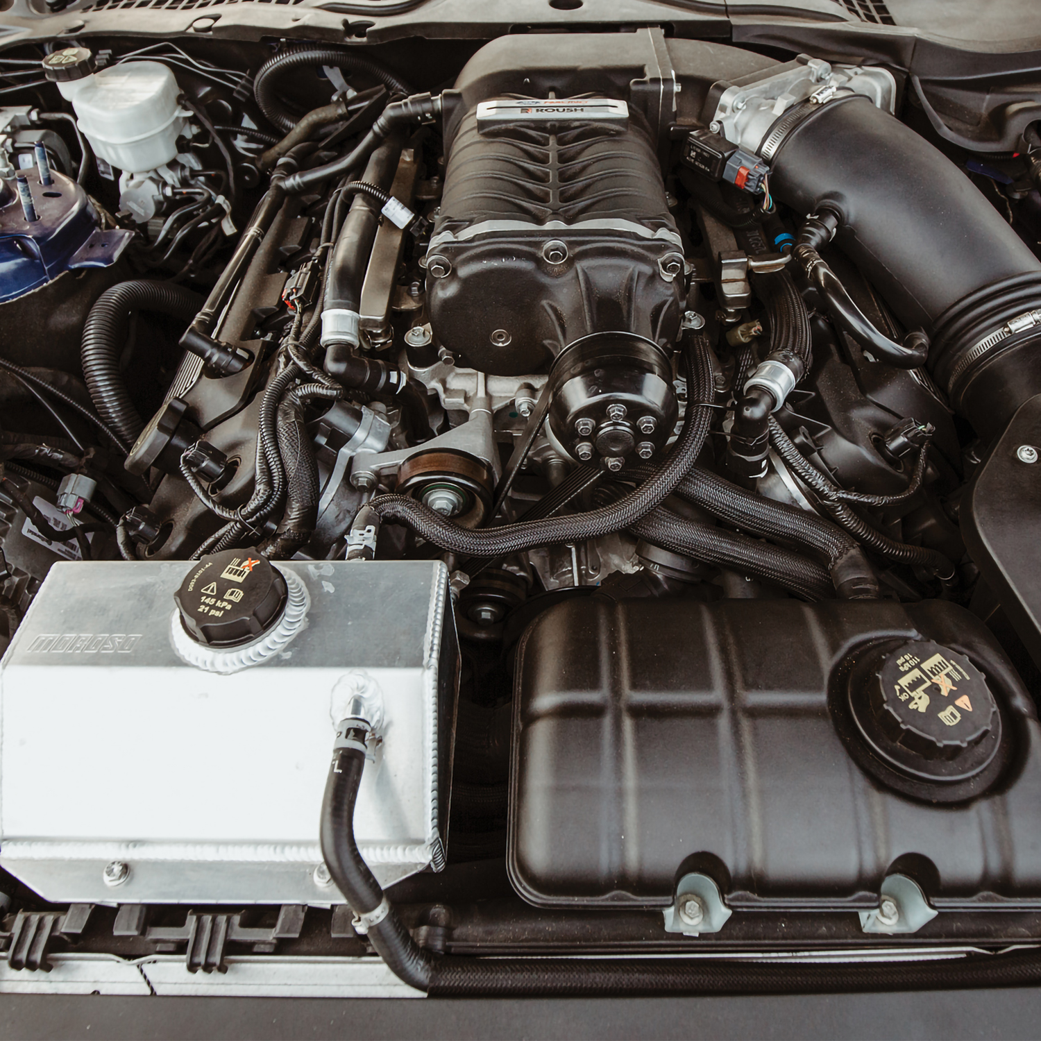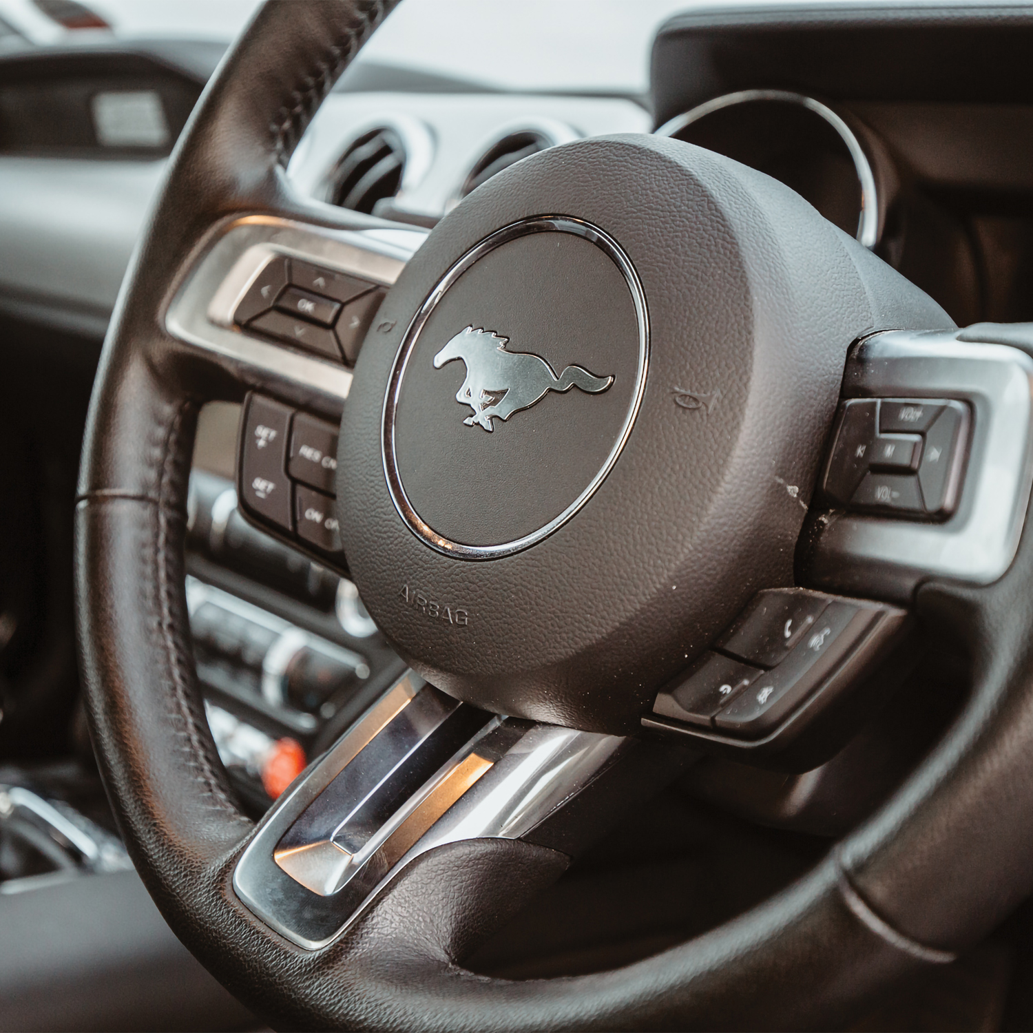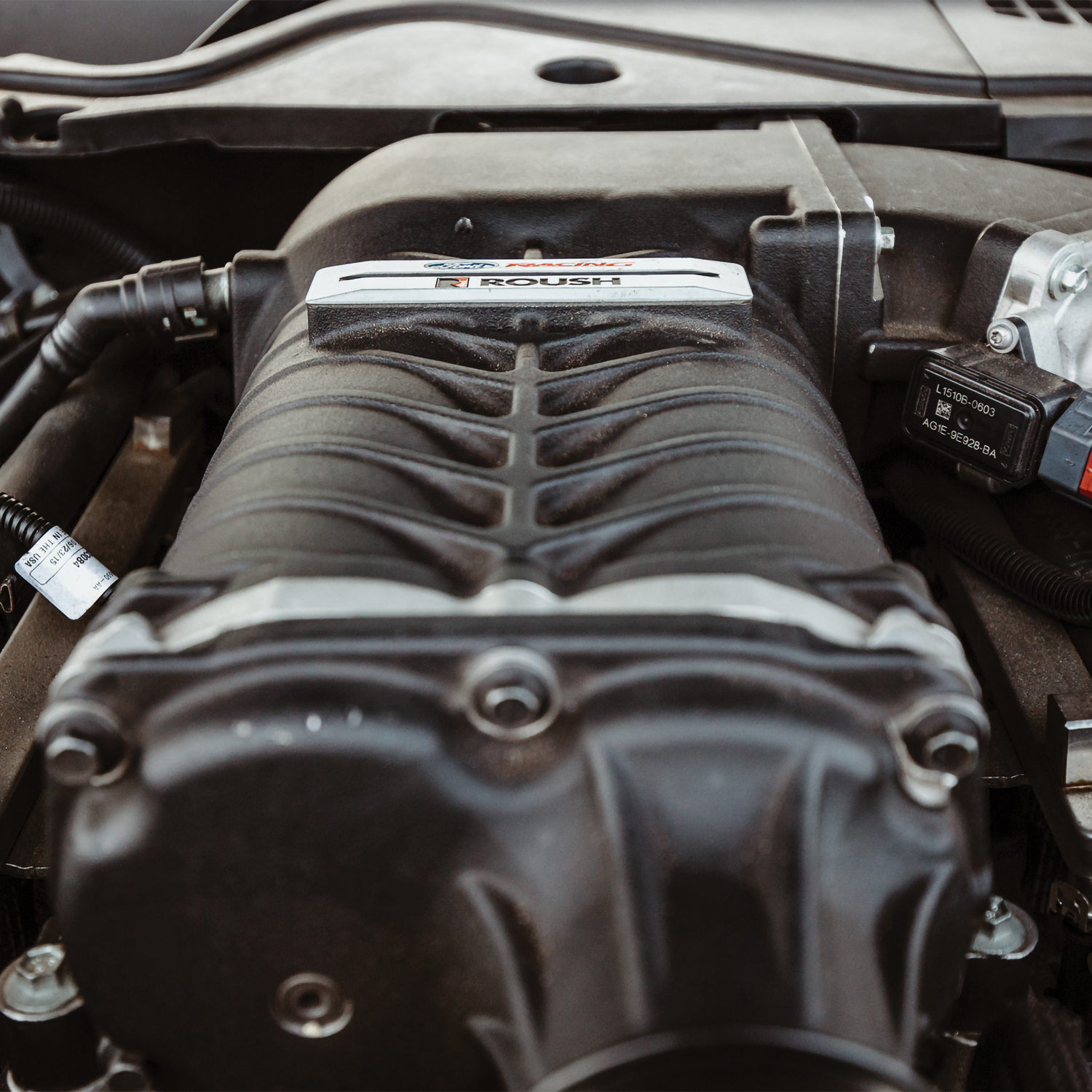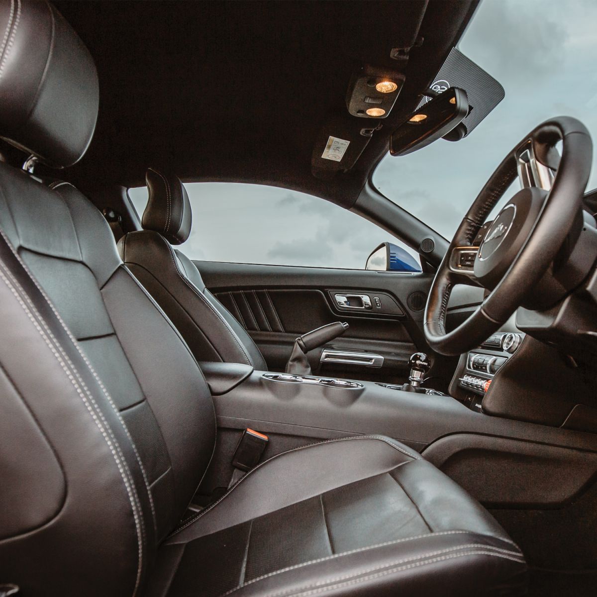The brakes were not replaced as the Brembos that came with the car do an excellent job. Greg’s Garage did the engine rebuild. The part specification on the motor is a Ford Coyote 5.0L with a Roush supercharger. The fitment of the supercharger is pretty straightforward. Greg said that there were a few challenging bits which were more difficult than what was shown in the instructions. The interior and seats are standard Ford. He fitted a Roush short shift kit which really helps with the fast gear changes.