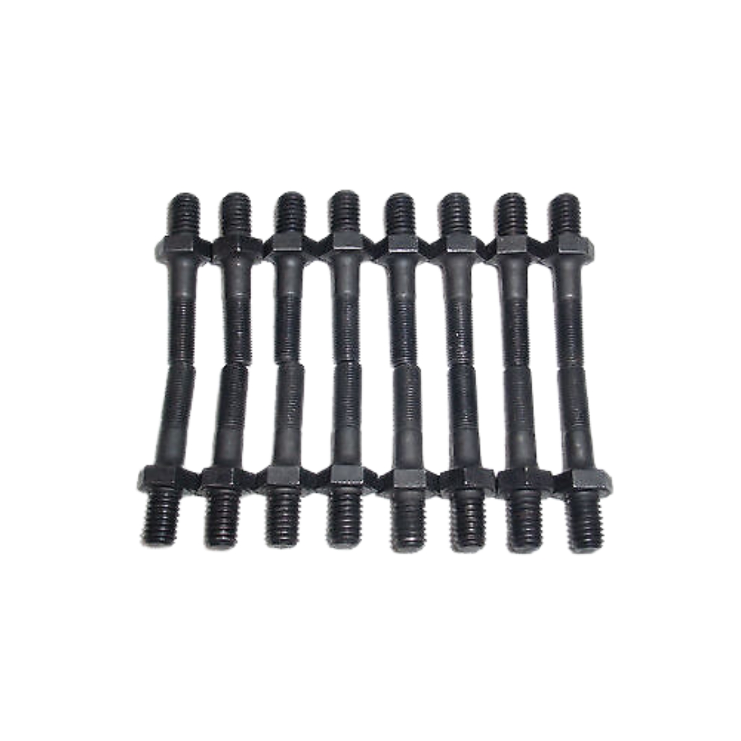These studs are .200 longer than stock rocker suds and are 7/16 in diameter for rockers and 7/16 in head. The threaded portion on the stud is .200 longer than stock providing extra thread contact for poly locks and roller rockers. The overall length is 2.800, the length below the hex is .750, length below the hex to the top of the stud is 2.050. They will still clear standard height valve covers without any interference.