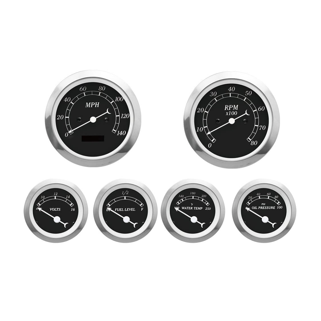 - PRODUCT DETAIL: Speedometer 0 - 140 MPH, Tachometer 0 - 8000 RPM, Volt 8 - 16 V, Fuel Level E - 1/2 - F (Resistance 240-33 ohms), Water Temperature 100 - 250 °F, Oil Pressure 0 - 100 PSI.