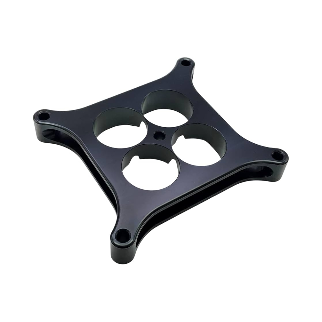 The 4150 carburettor spacers can isolate the carburettor from the manifold, preventing horsepower-robbing heat transfer while also increasing air flow due to the increase in distance from the bottom of the carburettor to the manifold plenum, allowing the air and fuel mixture to turn more easily into the runners.