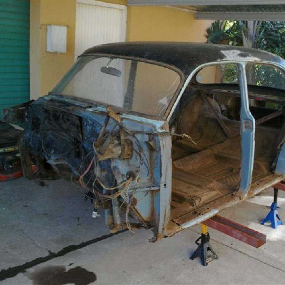 Armed with a battery and petrol in a jerry can, he managed to start the car and even reverse it out of the property. Despite needing serious TLC, it was remarkably complete — missing only one stainless steel beading. That was all the convincing he needed.