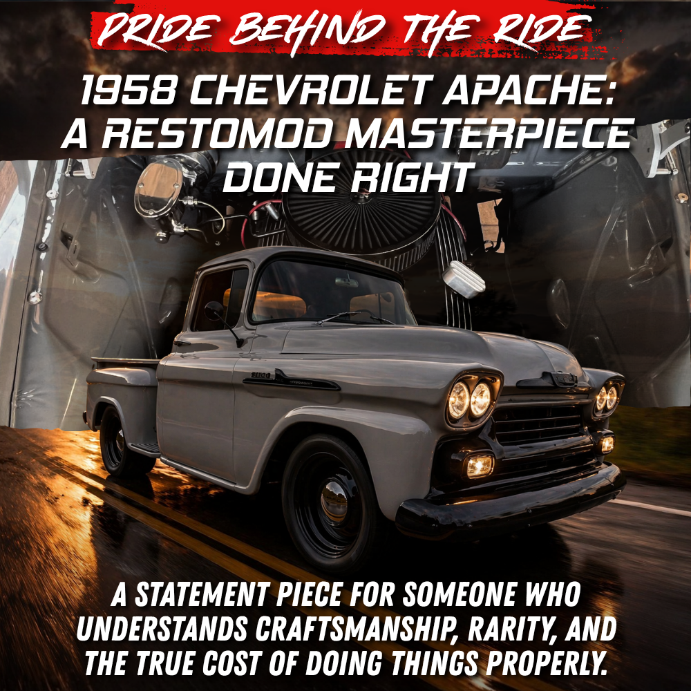 There’s something undeniably special about a classic American pickup — especially one that’s been brought back to life with purpose, precision, and respect for its heritage. This 1958 Chevrolet Apache is exactly that: a carefully executed restomod that blends timeless styling with modern performance and reliability.