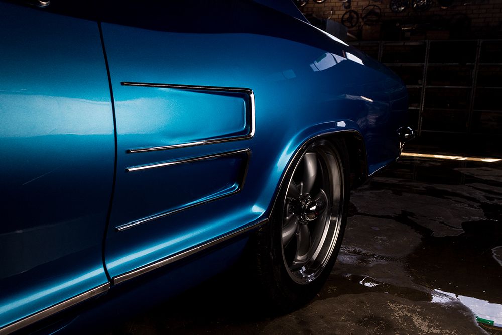 It had blown a head gasket some time ago so the head has been taken off when he got it. Dave stripped the motor down and rebuilt it completely. In order to keep the engine original, he kept the Rochester Carburetor that came with the motor. The original Super Turbine gearbox was also sent in for an overhaul as well. When deciding on the paint, Dave wanted a colour that would make the iconic lines of the Riviera stand out. He started mixing colours in his booth and said I just mixed a colour and tested it. And if I was not happy, I went back and added a bit of this and that until I was happy.