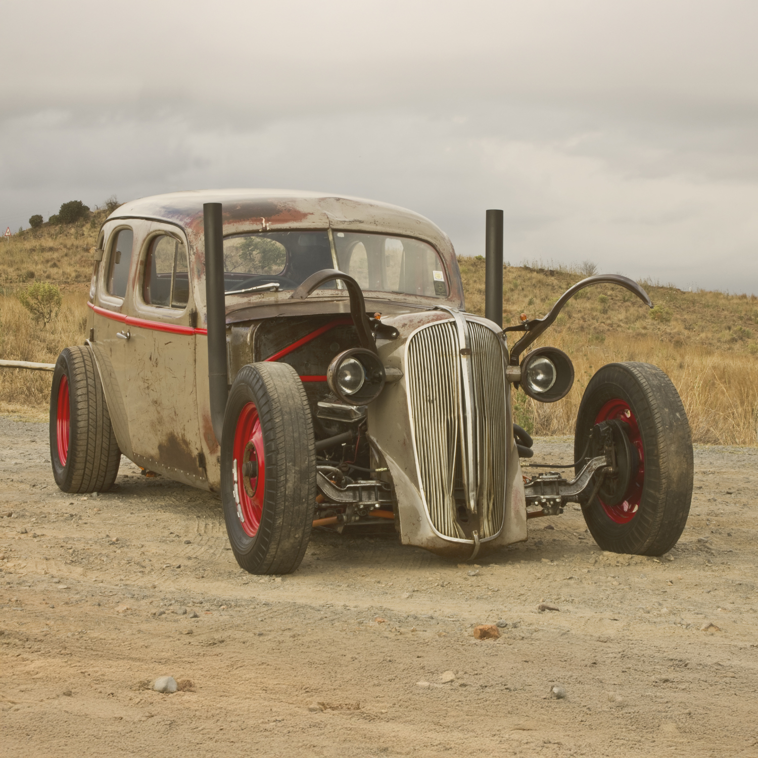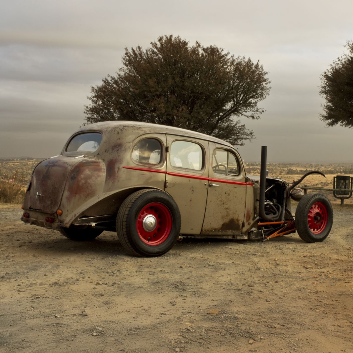 The Chevy’s story starts on a farm in Delmas, Mpumalanga, where it had been resting under a tree for decades. It belonged to an elderly woman whose husband had planned to restore it before he passed away. By the time Danie found it, the car was partially sunk into the ground, the woodwork had rotted away, and most people saw nothing more than scrap. Danie originally bought it just for parts and even felt he had made a mistake on the drive home. But once the car was in his yard, something about it demanded attention. That’s when the real build began.