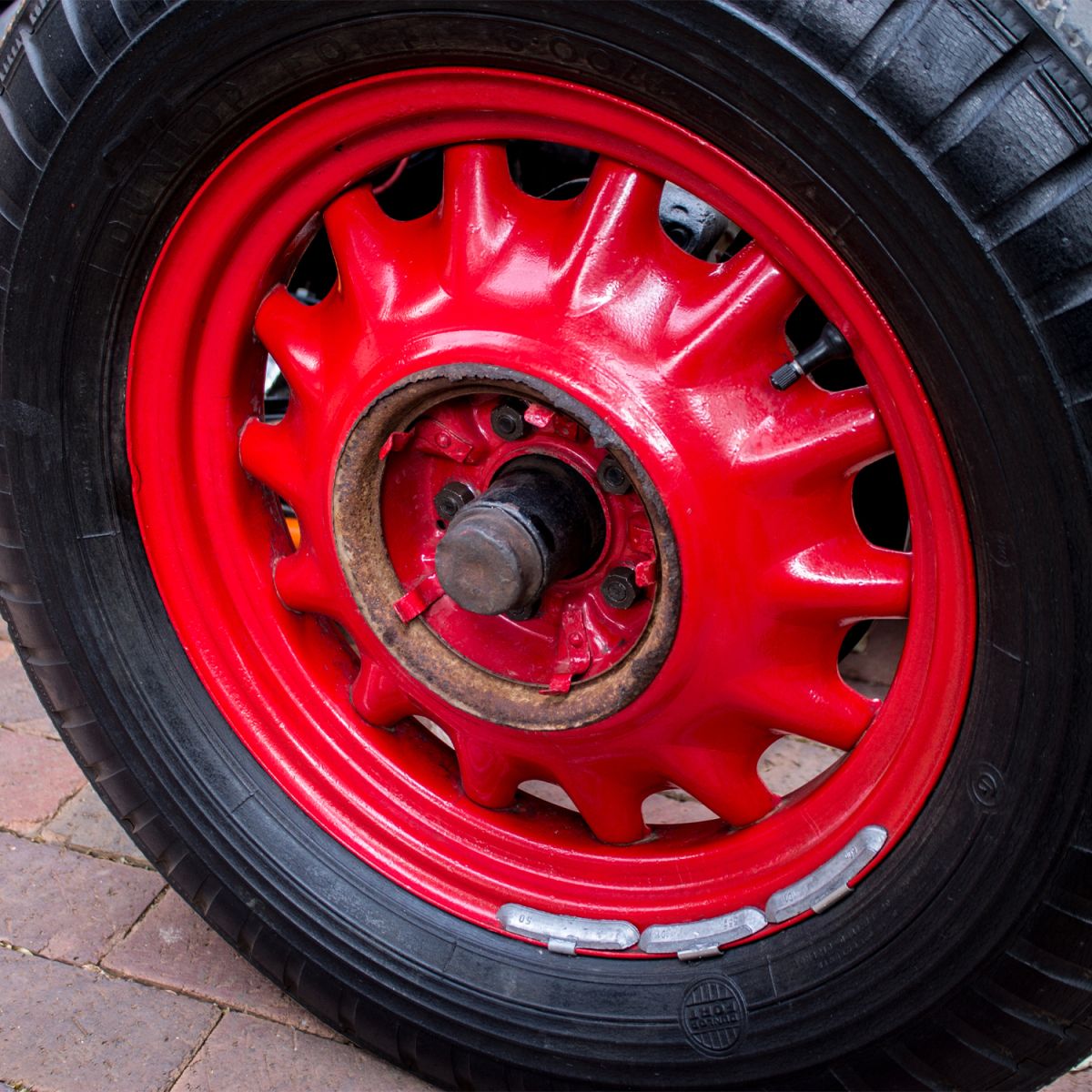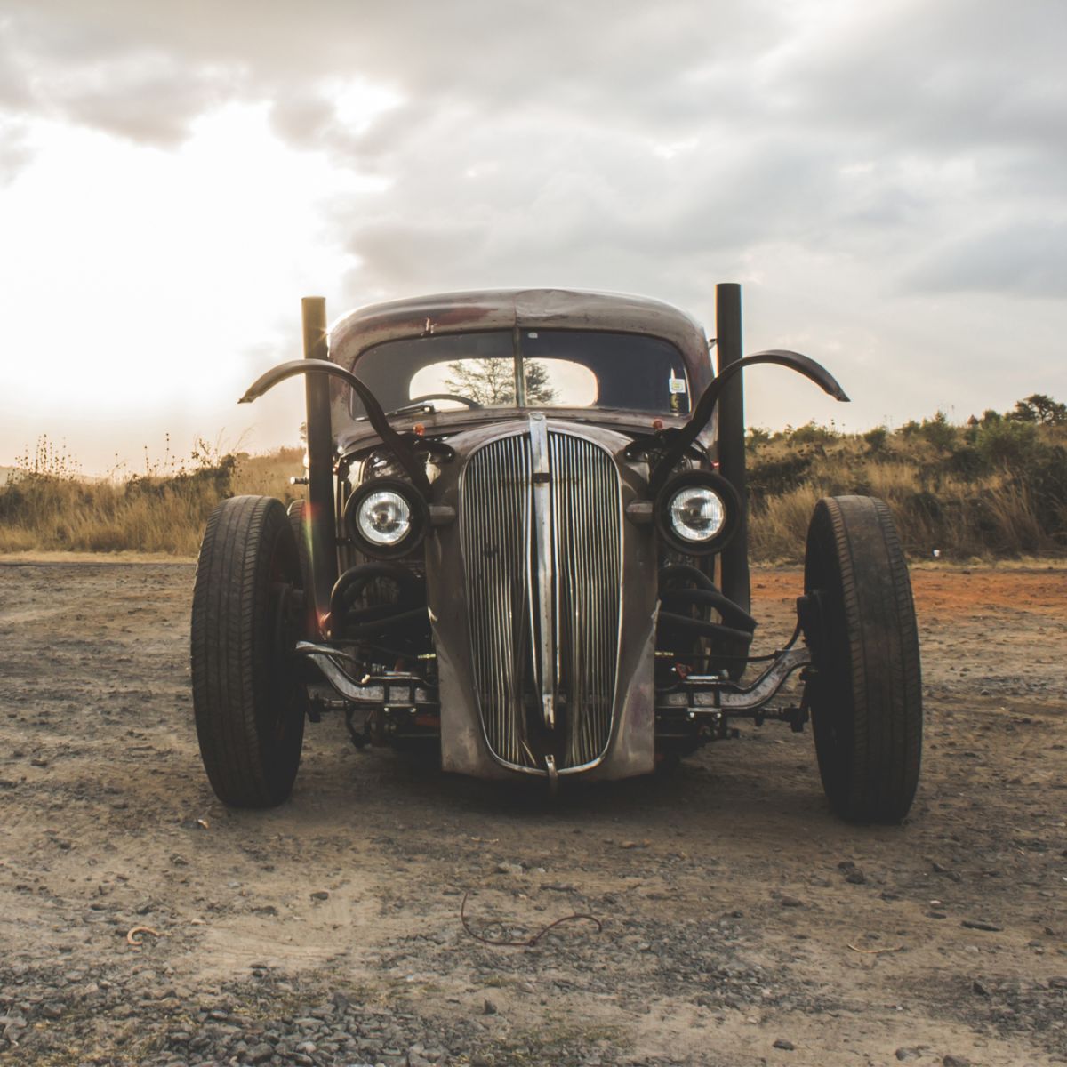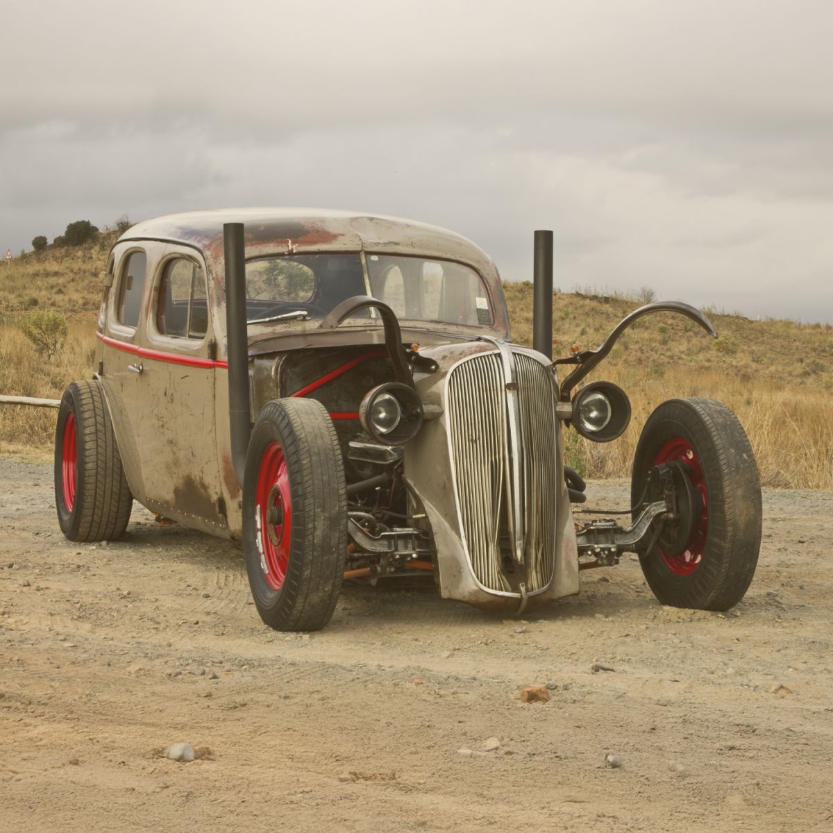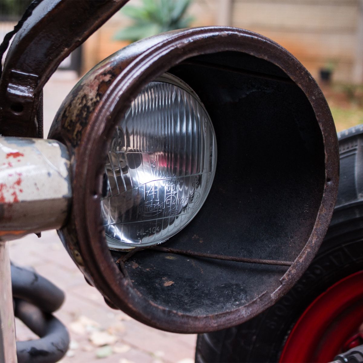 The floor was completely gone, so Danie fabricated a new one that could house the propshaft, internally mounted air suspension and rear diff. The doors were rebuilt from within, retaining only their skins. The center B-pillar was removed to open up the cabin and give easier access, and the body was lowered onto the chassis to create its unmistakable stance. The original patina — more than eight decades of weathering — was preserved under clear coat rather than covered over. The chassis remains original, strengthened and sealed in clear as well.