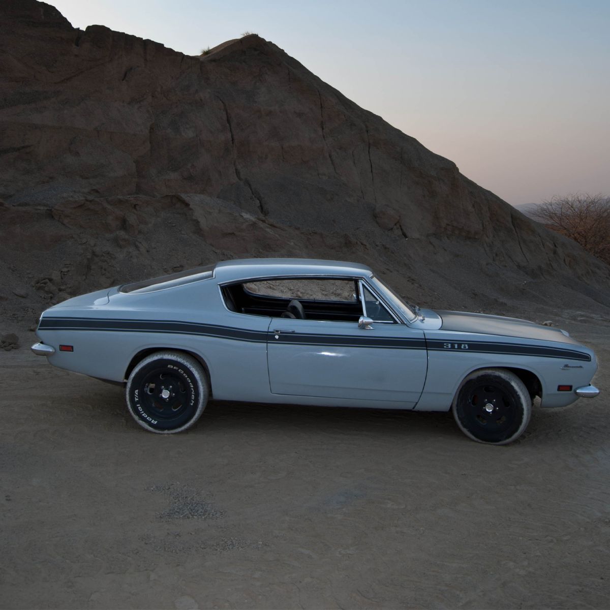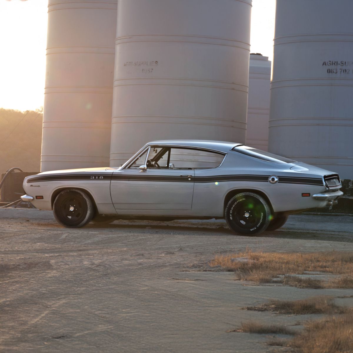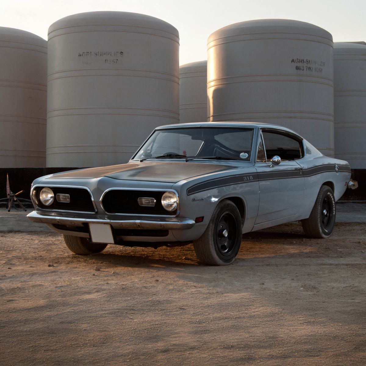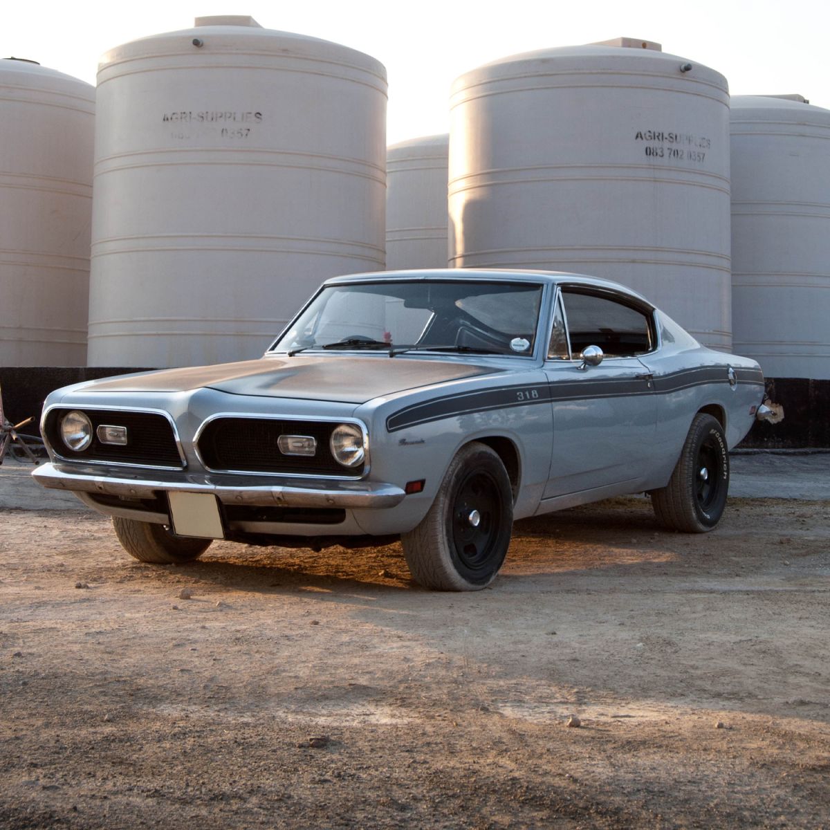 Owner: Etienne Fouché Location: Malalane, Mpumalanga 1969 Chrysler Valiant Barracuda — 318 LA Small Block, 727 Torqueflite, 15” Slots, BF Goodrich Radial T/A, Edelbrock Performer Intake, Holley 600, block-huggers, and an attitude you can’t buy in a catalog.