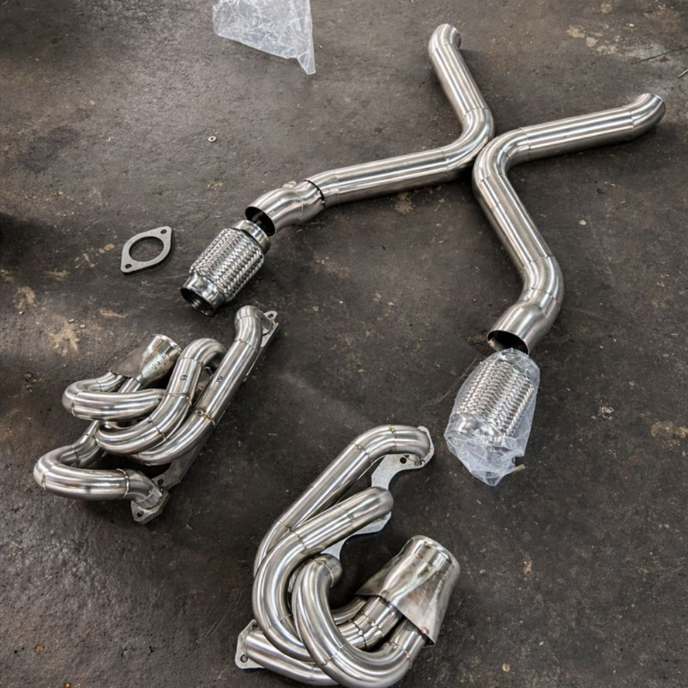 A full stainless-steel exhaust system with an X-pipe was fabricated by a specialist exhaust shop, giving the stroker Windsor the aggressive soundtrack it deserves.