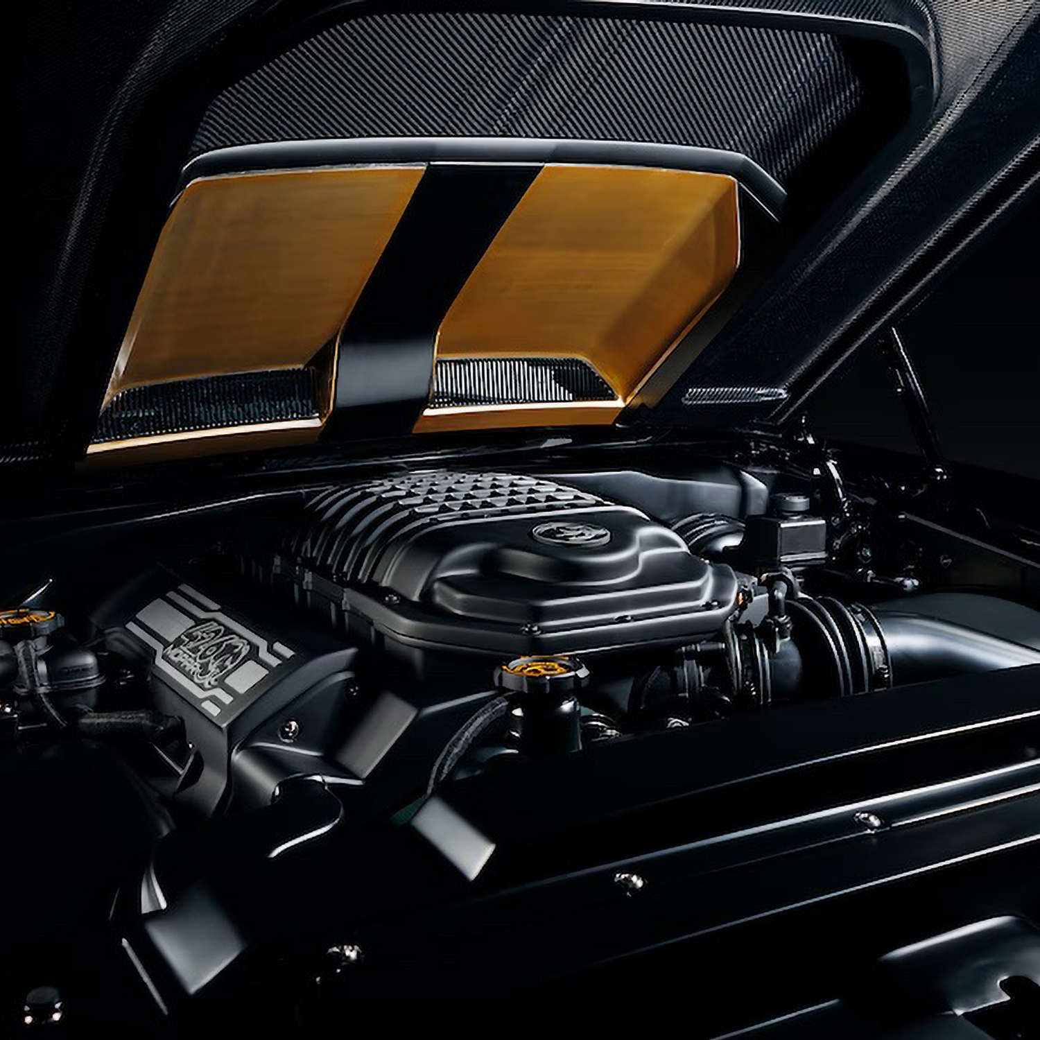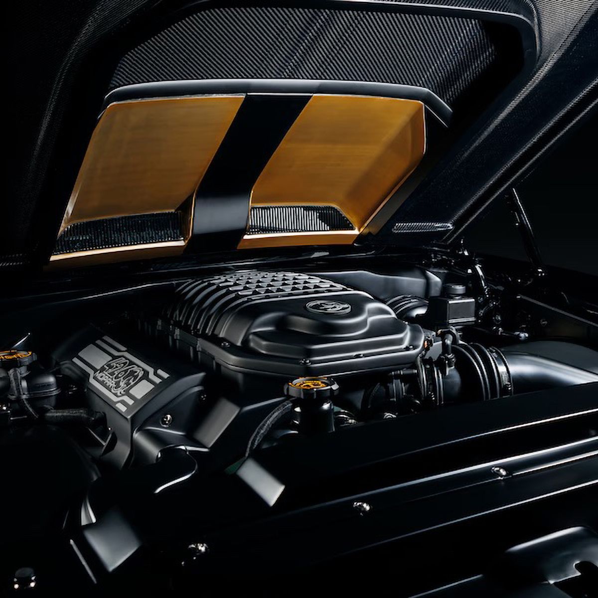 “TUSK took over 5,000 hours to complete and is a radical rethink of the classic Charger, marrying the aesthetics of a 20th-century icon with the rigorous build quality and signature touches Ringbrothers has become renowned for.” BASF Glasurit’s “Black to the Future” accentuates the Charger’s tapered fenders and muscular proportions while the contrasting gold elements give notice of a rightly menacing look. That intimidating aesthetic is not purely visual, as the front wheels have been brought forward two inches to extend the wheelbase and enhance handling.