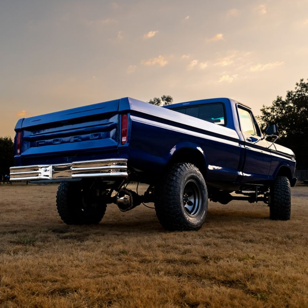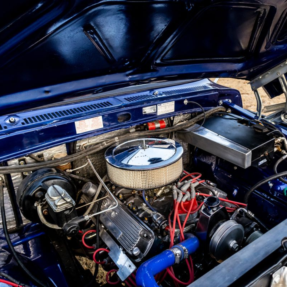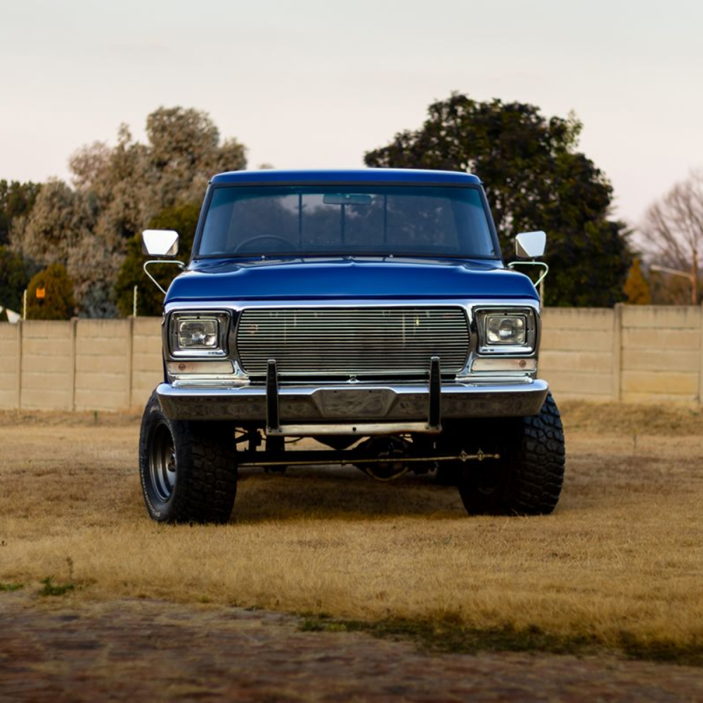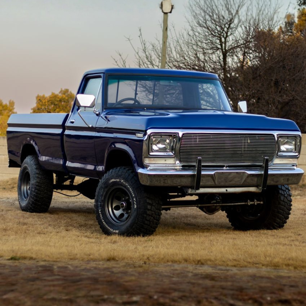 The F250 came with a Ford V8 351 Winsor with an original 4-speed box. Neil rebuilt the motor himself and added a bunch of new parts. This included stainless steel headers, a Holley four-barrel cab, a Dress up kit, and MSD dizzy and coils. A new fabricated stainless performance exhaust was fabricated by Wimpie at Steelroad. The material was supplied by Jacksons distribution. Also, the petrol tank was relined by Villieria Radiators in Pretoria.