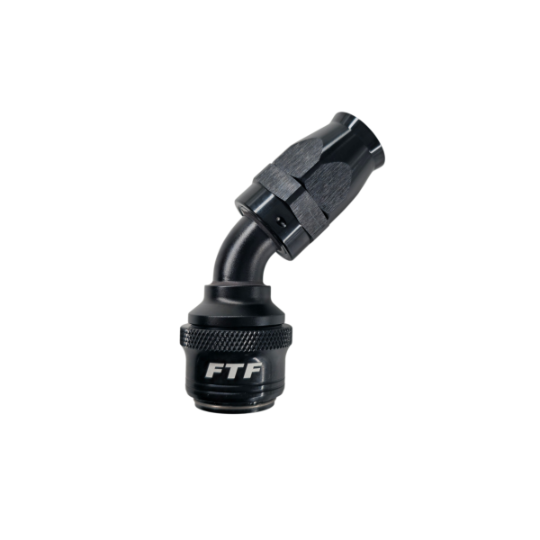 FTF Pro Range Quick Release 45° Hose End for PTFE/Teflon Lined Hose - AN8 Size\n\nPremium quick-disconnect hose end designed for ptfe/teflon lined applications. Perfect for professional installations requiring frequent maintenance access.\n\nKey Features:\n• High quality finish\n• Ease of use\n• Tool free, quick release mechanism\n• Spring loaded locking mechanism\n• Machined from 6061-T6 billet aluminium\n• Compatible with ptfe/teflon lined\n• AN8 thread size\n• 45° angled configuration\n• Corrosion resistant anodized finish\n• Leak-proof O-ring seal design\n\nApplications: Fuel systems, oil systems, coolant systems, brake systems, and other high-pressure fluid applications requiring quick disconnect capability.\n\nPart of the FTF Quick Release Pro Range - engineered for performance and reliability in demanding automotive applications.