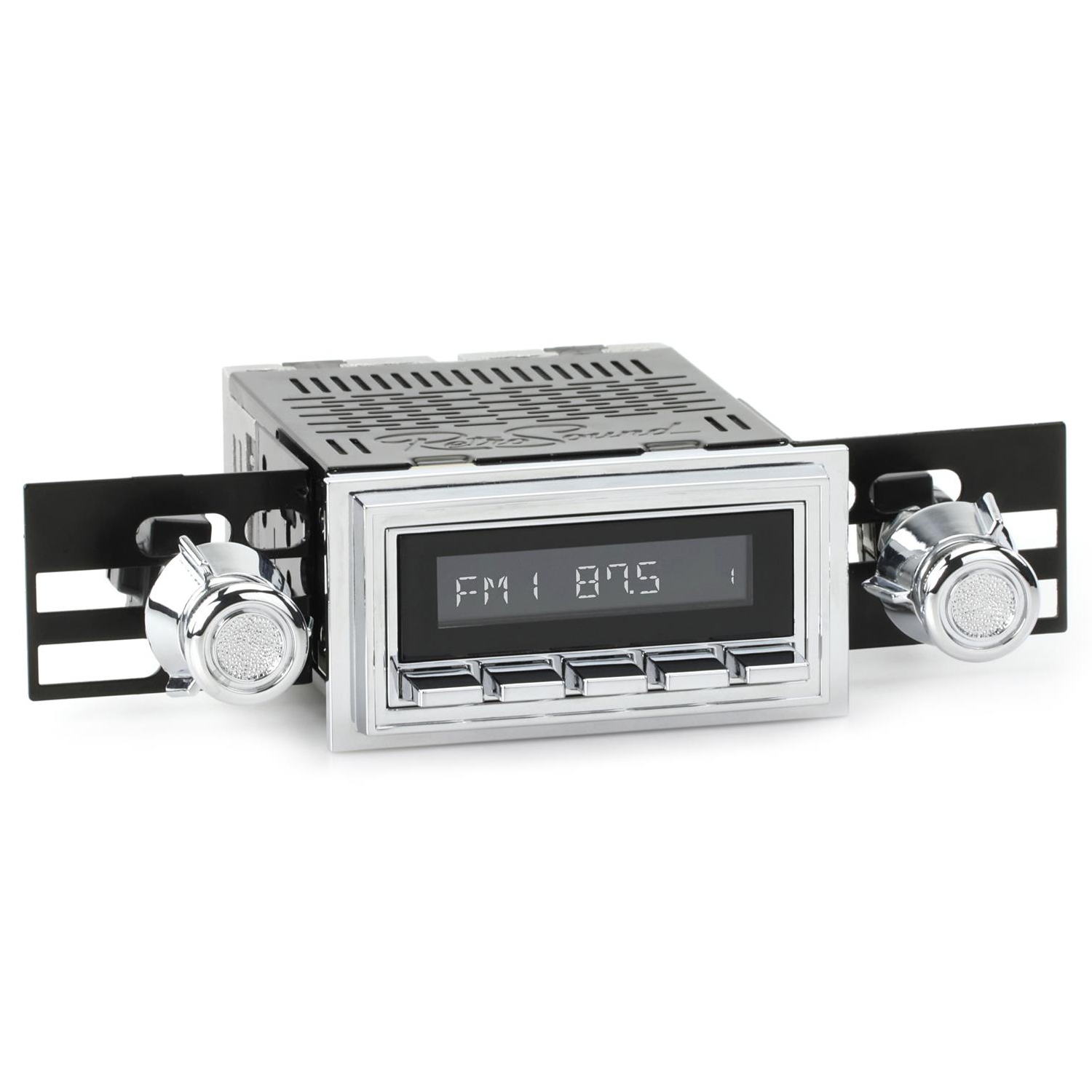 Retro Sound USA offers Motor 4 HD radios for a wide range of vehicles from the 1960s, '70s, and '80s. These RetroRadios look like the original factory radio in your car or truck, while discretely adding all the modern audio features found in your daily driver. Classic push-buttons, replica knobs, and a period-correct bezel or faceplate combine with the radio's display to create a truly authentic look. Listen to your local radio stations, stream your favorite SiriusXM channel, or play your favorite music over Bluetooth from your connected device—all with a classic style that blends seamlessly with your interior. For a factory-like fit, InfiniMount brackets are included; they can be adjusted during installation to achieve the proper width and depth of control shafts and a flush fitment of the radio face. Order the model designed for your vehicle.