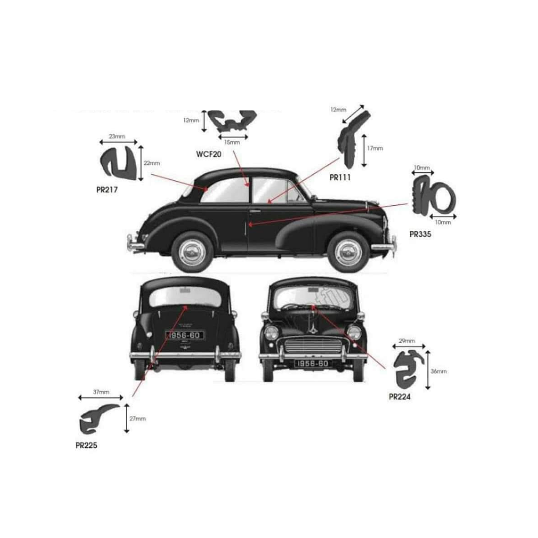 1 x Front windscreen rubber (this rubber accommodates the original chrome beading)